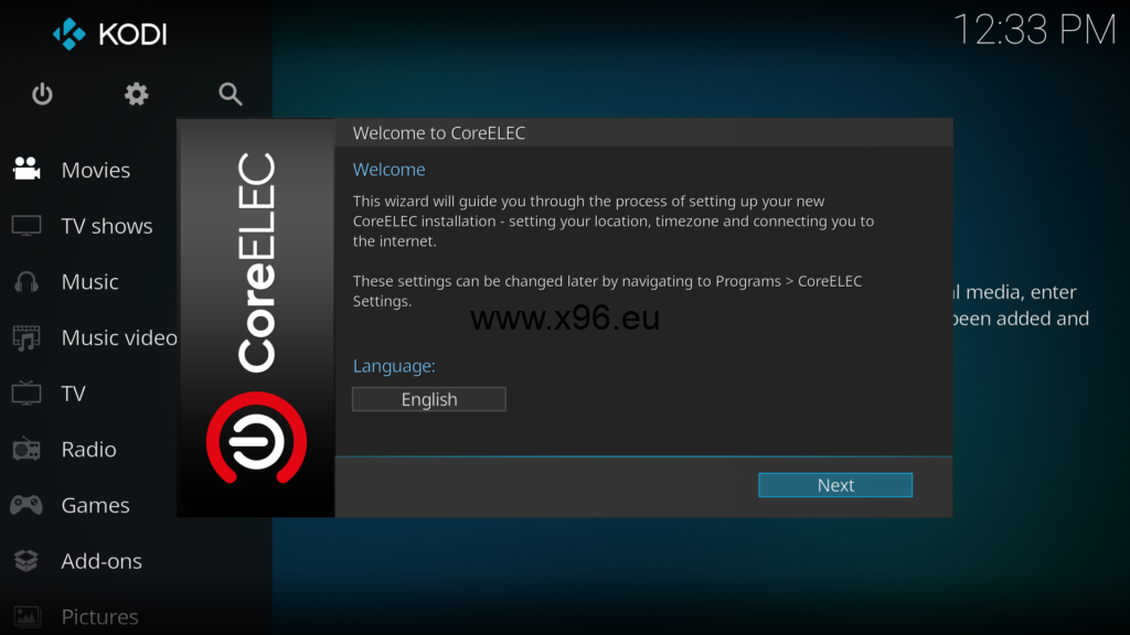 Pokud vše proběhne v pořádku, objeví se vám uvodní obrazovka Coreelec.